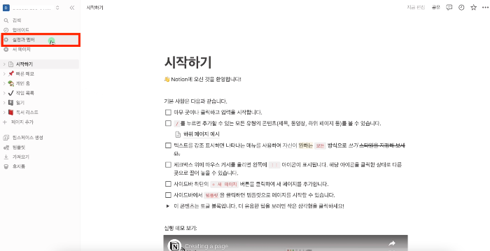 노션 개인용 워크스페이스