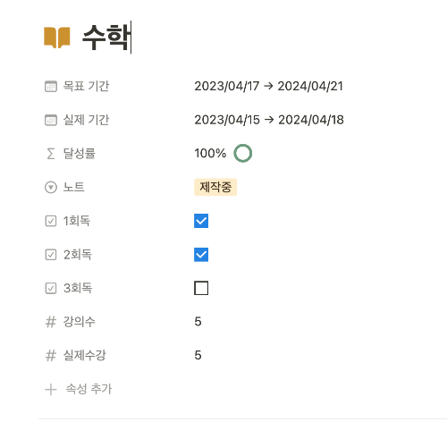 과목별로 정리하여 달성률을 관리하고 메모를 남길 수 있습니다.